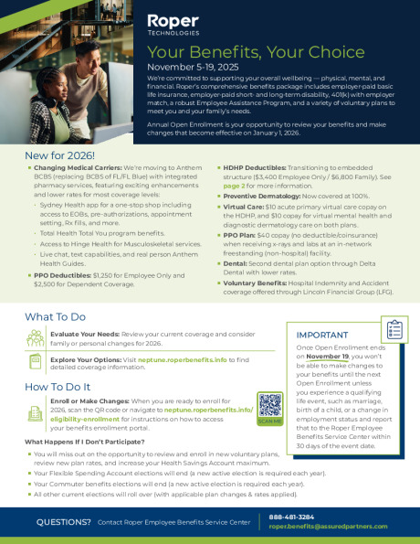 View the Roper Technologies – 2026 New Hire Benefits Presentation here.