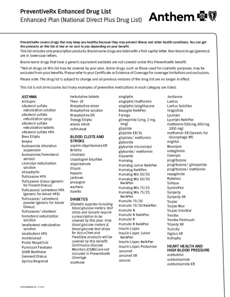 Example: If you are diabetic and require A1c testing and insulin medication, you can be covered for certain drugs and services at 100%.